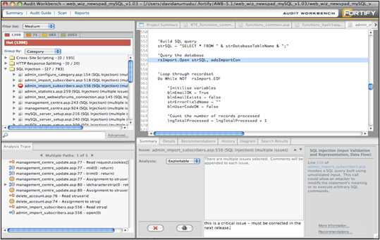 - Cho phép đánh giá và gán giá trị kiểm tra (Assign auditing values) đối với một vấn đề hoặc một nhóm các vấn đề sau khi phân tích kết quả dò quét. Ví dụ: sau khi dò quét và phát hiện ra 1 vấn đề trong phần mềm thì người thực hiện đánh giá/người lập trình sau khi kiểm tra có thể đưa ra đánh giá và gán giá trị cho vấn đề đó ví dụ: xem đó là một vấn đề thực sự hay không