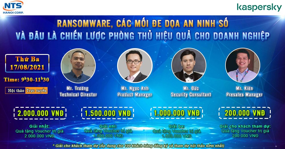 Nam Trường Sơn Hà Nội kết hợp cùng với hãng bảo mật danh tiếng Kaspersky tổ chức buổi hội thảo trực tuyến: